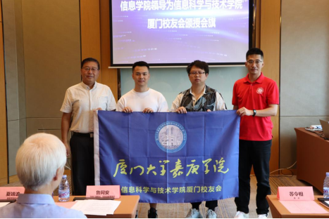 会议伊始,邓小婷代表信息学院厦门校友会筹备组向大会作出了筹备工作汇报。大会审议并通过了《厦门大学嘉庚学院信息科学与技术学院厦门校友会章程》,选举了第一届理监事会的成员,宣布厦门大学嘉庚学院信息科学与技术学院厦门校友会正式成立,并由夏靖波院长、张舸向信息学院校友会颁授会旗并合影留念,信息学院厦门校友会会长苏令相向第一届理监事会成员颁发聘书并合影留念。