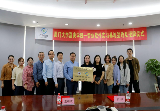 2022年10月26日上午,厦门大学嘉庚学院信息科学与技术学院(以下简称“信息学院”)和智业软件股份有限公司共建教学实习基地签约授牌仪式在(厦门)智业软件公司总部举行。智业软件股份有限公司副总裁邵琴、信息学院院长夏靖波、实习与就业服务中心主任叶志筑、信息学院副院长郭一晶、智业软件股份有限公司人力总监周涵、实习与就业服务中心老师李圆圆和陈雅雪、信息学院辅导员杨海洋和王燕清共同出席了本次签约授牌仪式。