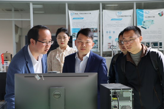 首先,在我院郭一晶副院长的陪同下,叶经理一行人来到公一教学楼,参观了416视觉传感实验室、102机器人实验室。