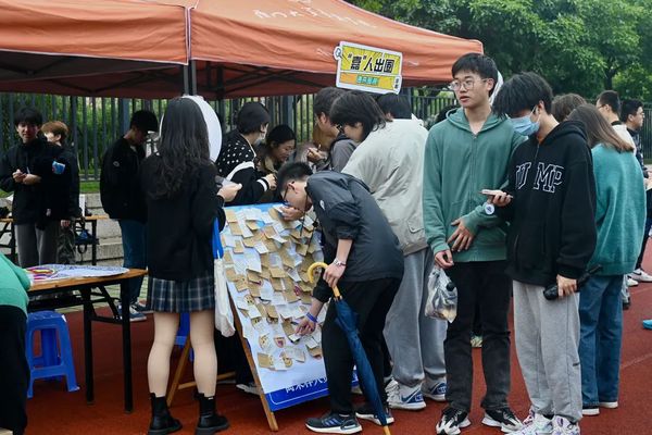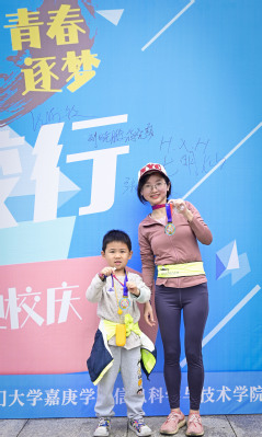 一个小时内,200多名参赛者陆续完成环校行,回到玉兰广场,工作人员依次为参与者们颁发了专属纪念奖牌,组织大家在展板上签名并合影留念。