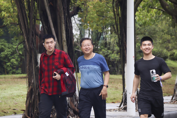 随后,大家在领跑员的带领下开始热身环节,伴随着一声长鸣,活动正式开始。浩浩荡荡的长队快速移动,沿着特定的路线进发。本次环校行活动从玉兰广场出发,途经小巨蛋、隧道、嘉庚广场、风雨球馆、棒球场等地,一路上跟随志愿者指引,师生们按照路线井然有序绕校运动。既有健步如飞挥洒青春汗水的独行者,也有结伴同行有说有笑的小团队,更有老师带着孩子一家三口共同参与,小朋友尽管年龄尚小也不甘示弱,紧跟着队伍前进,一路上的参赛者们成为了“嘉园”内最美的风景线。