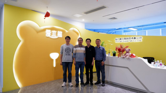 随后信息学院教师一行来到厦门爱立得科技有限公司,该公司为我院校友2010级通信工程刘兴民和合伙人一起创办的。厦门爱立得科技有限公司刘兴民校友首先介绍了公司的品牌爱立熊及主营产品,随后就公司的发展历程、荣誉资质、未来规划作了详细的介绍。郭一晶副院长充分肯定了校友企业的发展前景及创业热情,并热烈欢迎刘兴民校友常回“嘉”看看。