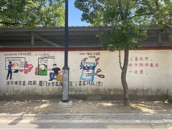 近年来,电信网络诈骗事件持续高发,为切实保障人民群众财产安全和合法权益、向广大群众普及反诈的知识与技能、深入推进打击治理电信网络诈骗违法犯罪工作。7月13日,厦门大学嘉庚学院信息科学与技术学院“i”嘉实践队联合浮宫镇人民党委、政府在漳州市龙海区浮宫镇开展了反诈宣传与反诈墙绘实践活动。