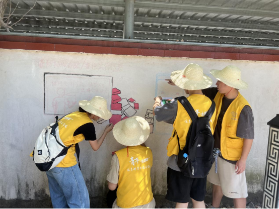 在浮宫镇内的墙绘是本次活动的重点与亮点,实践队员将丰富的创造力与热情通过墙绘表达,一笔一划勾勒出了网络诈骗手段如高薪骗局、网络贷款等新型网络诈骗以及防范方法,以青春之活力为浮宫镇添加上一道独特的风景线同时也提高居民对网络诈骗的防范意识。