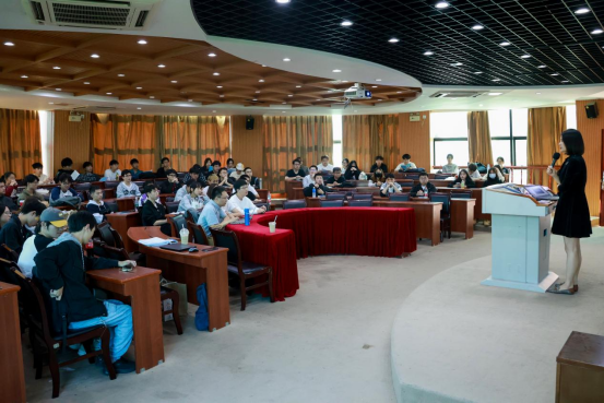 首先,进行宣讲的是章青燕女士,为更好了解同学们对自身未来就业的规划与展望,章女士特意请到现场的一位同学进行了一对一的沟通对话,在了解到该同学对于工作氛围的重视之后,章女士详细介绍到企业良好的工作氛围与办公环境,切实回应了同学们的期望。