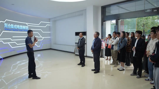 随后,师生前往海沧集成电路展馆进行了参观学习。海沧集成电路展馆内布置了各类互动展示,通过多媒体的形式向师生展示了集成电路的组成和工作原理,同时呈现了广泛的应用和未来趋势。在海发集团经理赖志伟的介绍下,同学们先后参观了序厅、“源·芯世界”、“梦·芯中国”、“筑·芯海沧”、“造·芯应用”五大展区,师生们系统地了解到集成电路的制造工艺和应用领域的详细信息。
